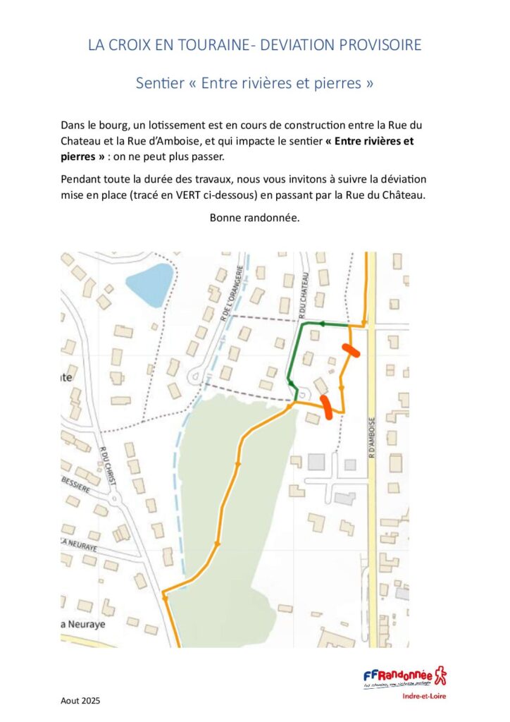 Cette alerte concerne le sentier PR « Entre rivières et pierres », sur la commune de La Croix en Touraine.